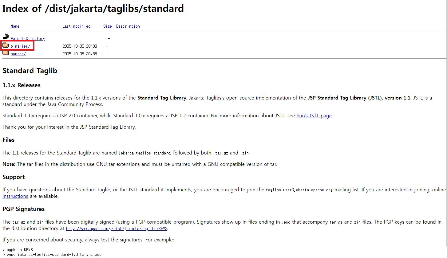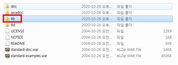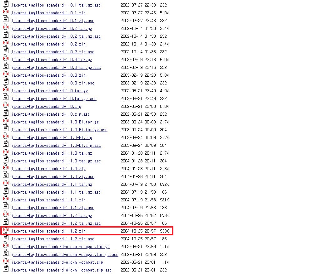 2. 아래의 화면에서 Apache Standard Taglib를 클릭합니다.