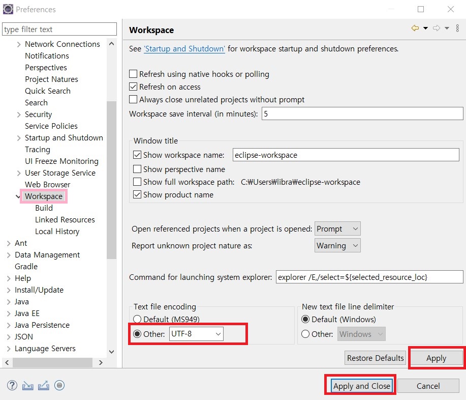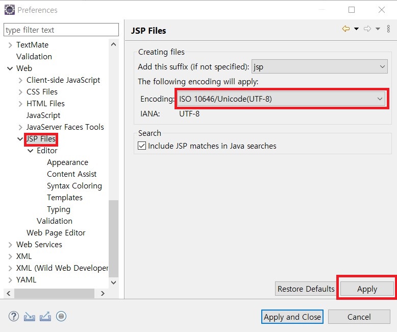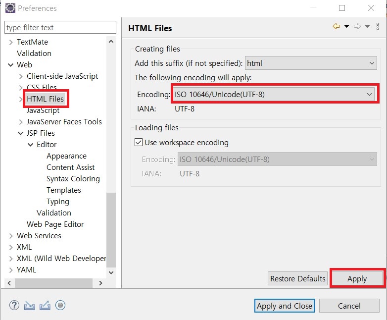 - 인코딩 설정하기 (Workspace, HTML, CSS, JSP)