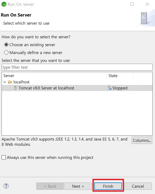 2. Finish 버튼을 클릭합니다.