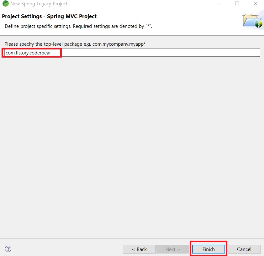 4. 사용하실 패키지명을 입력한 뒤 Finish 버튼을 클릭하면 됩니다.