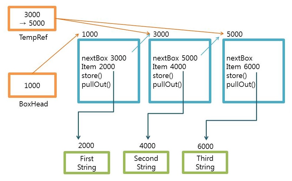 Q. SoSimpleLinkedListImpl.java 소스를 분석하여 메모리 맵을 그려 보시오.