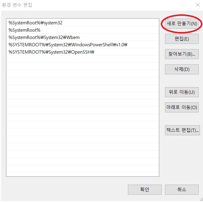 6. 우측의 새로 만들기를 클릭해줍니다.