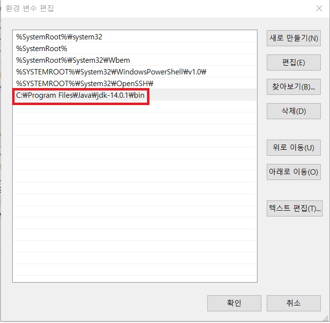 7. 기존에 복사해둔 폴더위치를 붙여넣기 해준 뒤 확인을 눌러주면 환경 변수 설정이 완료됩니다.