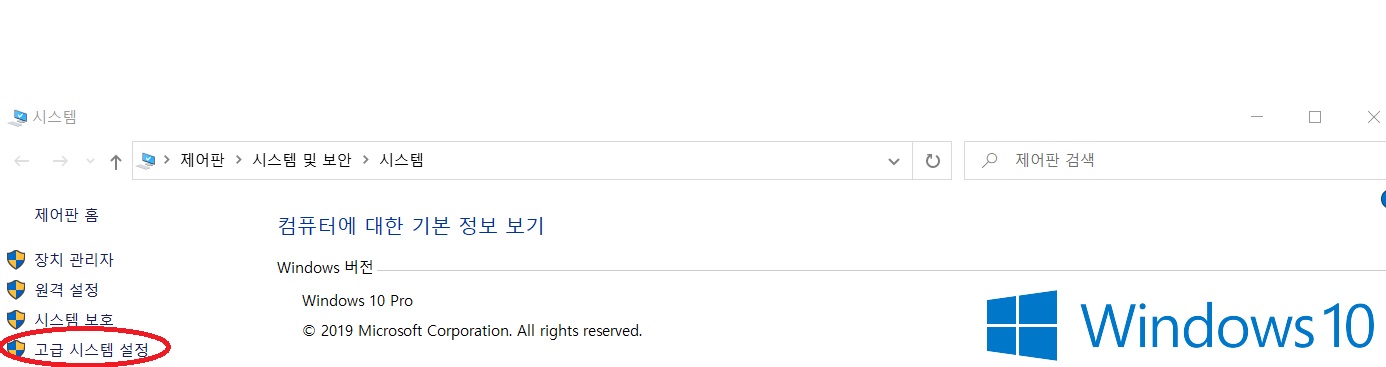 3. 속성에서 좌측 고급 시스템 설정을 클릭해주세요.