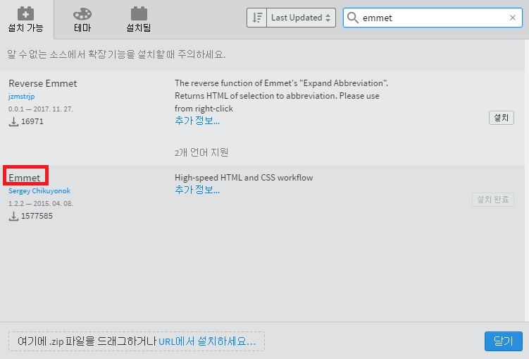 설치 시 여는 태그 대신 단어 입력 후 tab키 입력 시 자동완성된다.