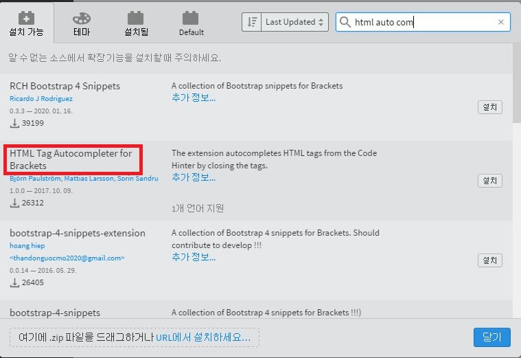 ③ HTML Tag Autocompleter for Brakets : 태그 수정 시 열린 태그와 닫힌 태그를 자동 수정해주는 기능