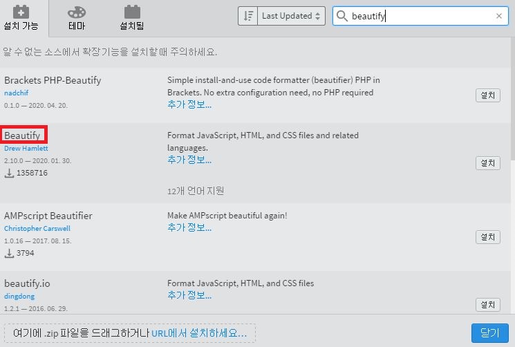 블록표시 : 필요한 확장기능 검색 및 설치