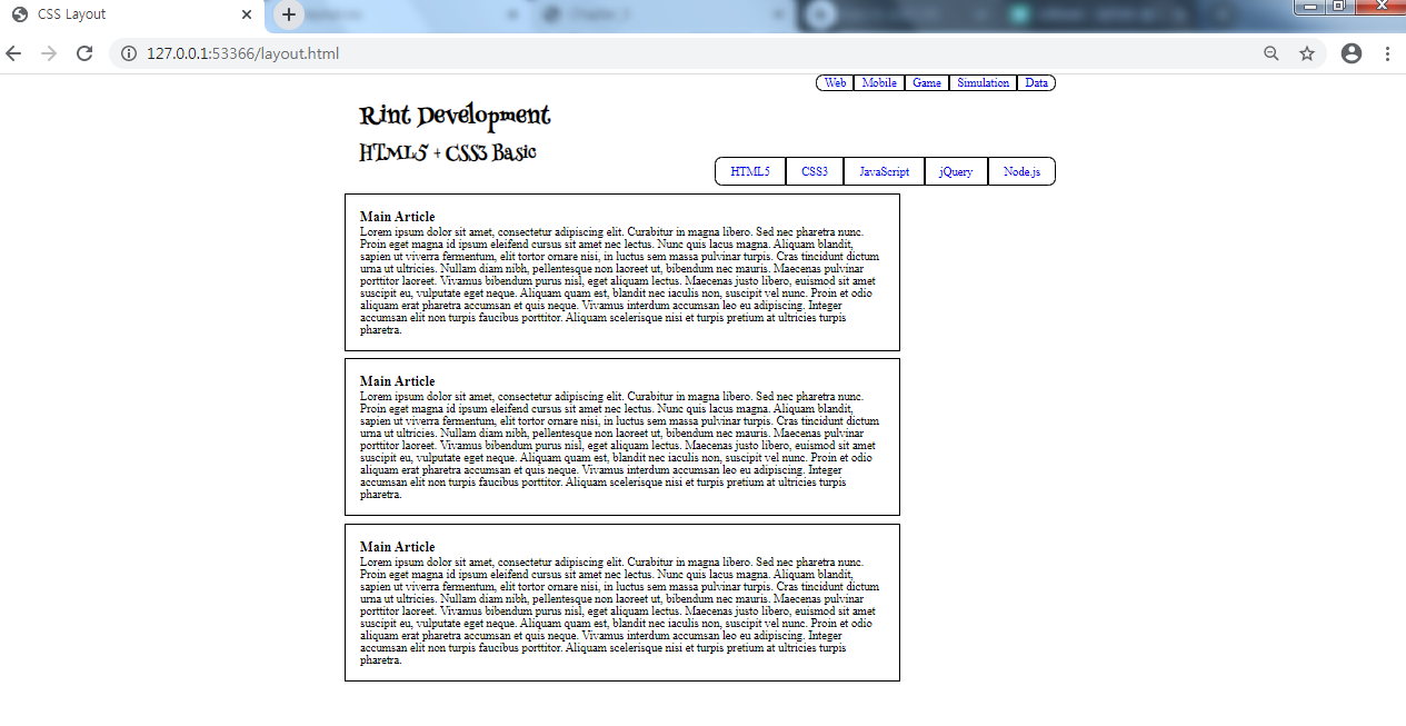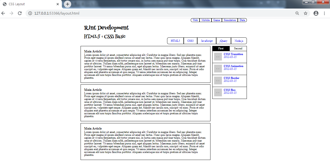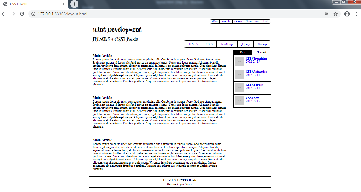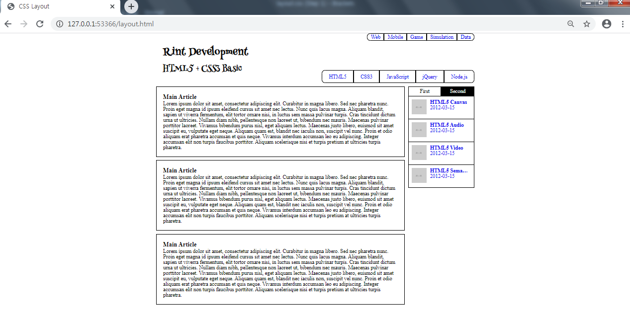 하단 내용 HTML5 + CSS3 Basic Website Layout Basic |