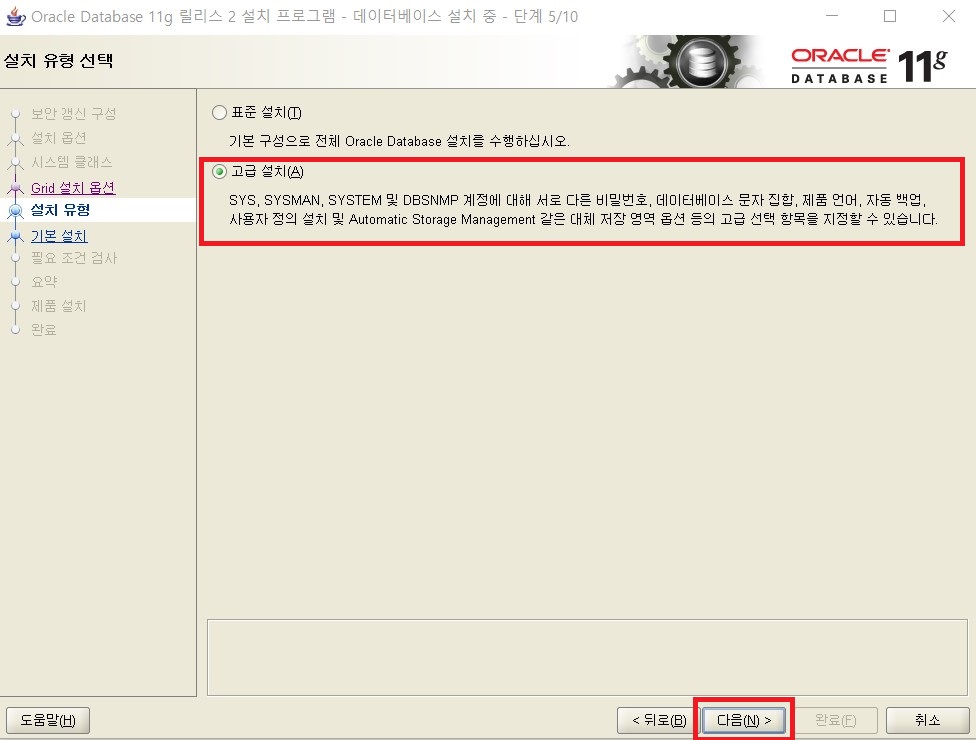 14. 고급 설치를 선택한 후 다음을 클릭합니다.