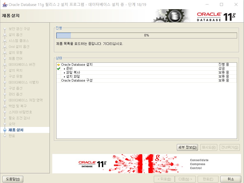 32. 아래의 Database Configuration Assistant 화면의 진행이 모두 끝날 때까지 기다립니다.