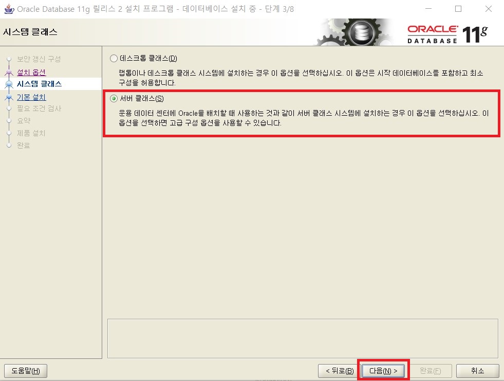 12. 서버 클래스를 선택하고 다음을 클릭합니다.