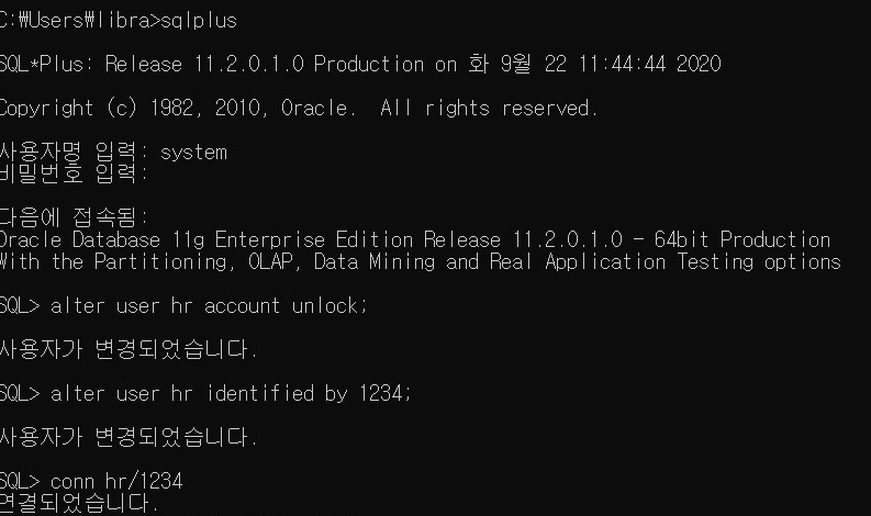 + SCOTT과 HR의 비밀번호를 설정하지 않은 경우