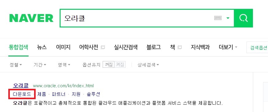 1. 오라클을 검색한 후 나오는 아래의 사이트의 다운로드 부분을 클릭합니다.