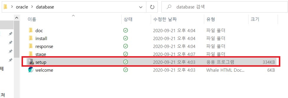 6. database 폴더의 setup 버튼을 클릭해 실행합니다.