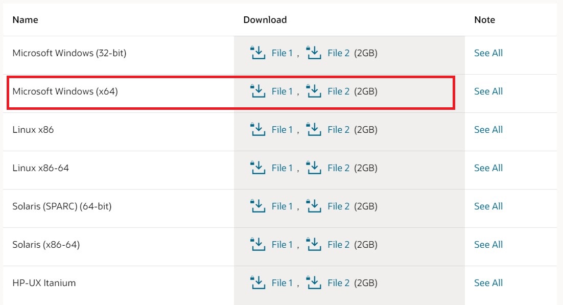 3. Microsoft Windows(x64) 중 다운로드의 File 1과 File 2를 모두 다운로드 합니다.