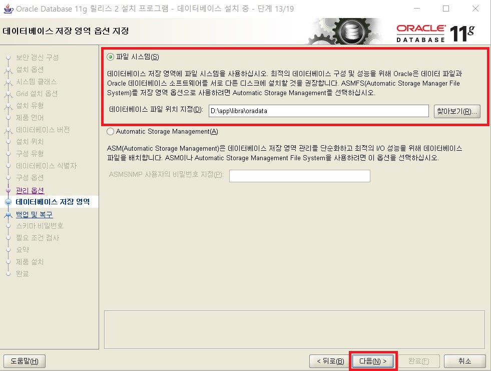 25. 파일 시스템을 선택한 후 다음을 클릭합니다.
