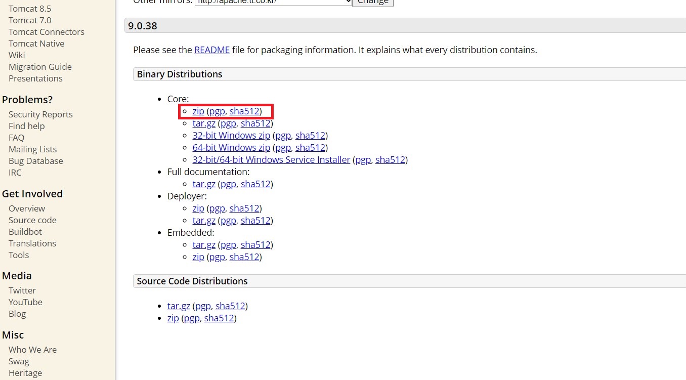 3. Binary Distributions 중 Core에서 zip(pgp, sha512)를 클릭합니다.