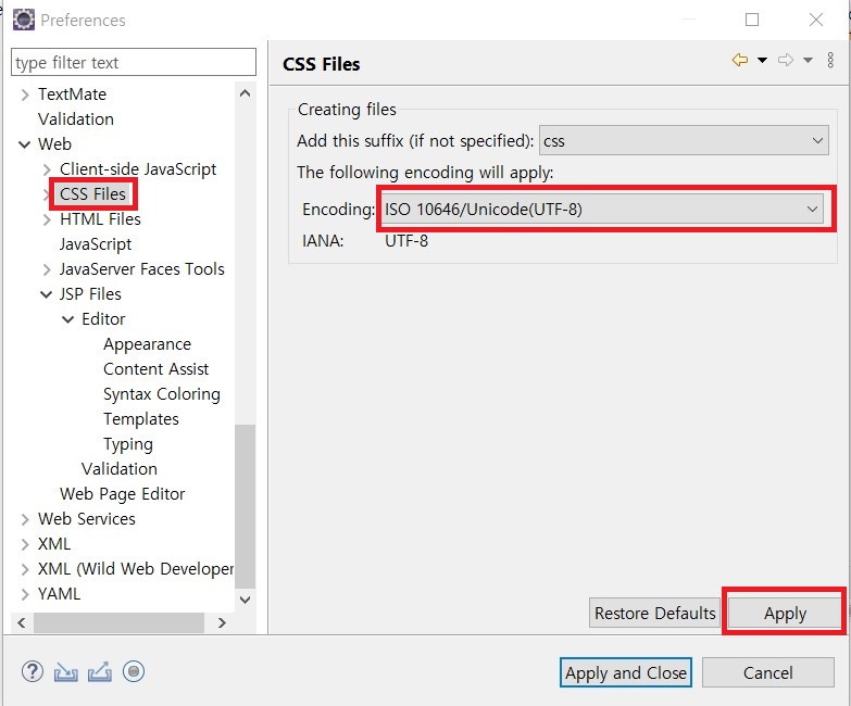 - 인코딩 설정하기 (Workspace, HTML, CSS, JSP)