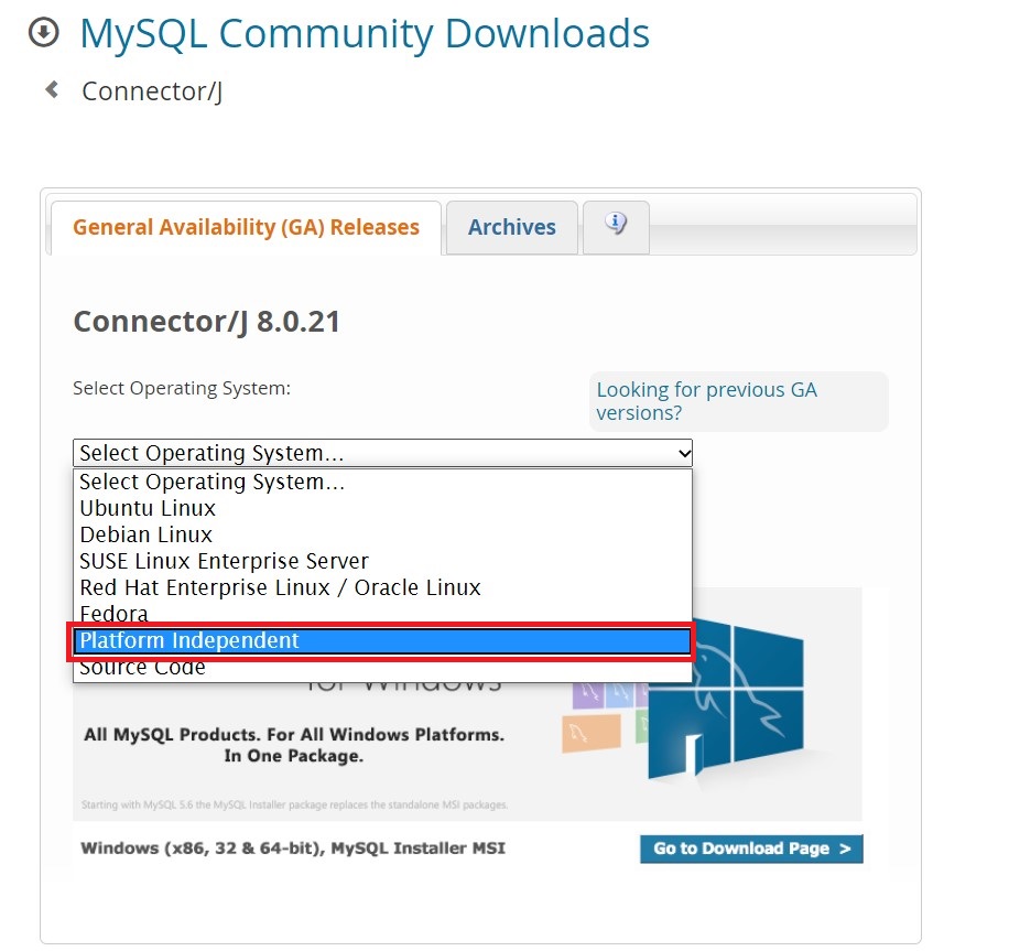 4. Select Operating System의 옵션 중 Platform Independent를 선택해줍니다.