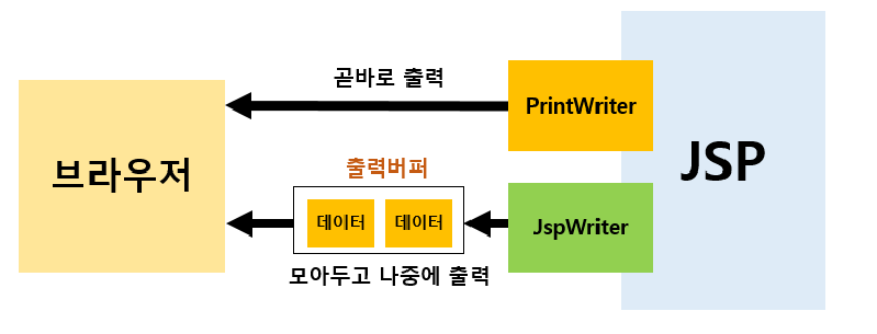 | 스크립트릿 | <% %> | JAVA 코드 삽입 기존 자바 언어를 동일하게 사용할 수 있음 |