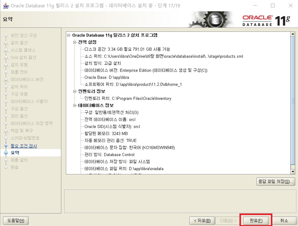 29. 아래의 화면이 뜨면 완료를 클릭합니다.